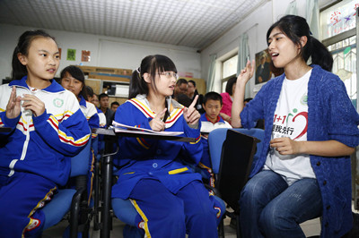 蒲公英中學(xué)是一所在日產(chǎn)(中國)投資有限公司及其他社會(huì)愛心企業(yè)和愛心人士的捐助下誕生并成長的公益學(xué)校,一直擁有良好的志愿者傳統(tǒng)。在這次“愛心1+1”活動(dòng)前期的志愿者招募中,40名鄭州日產(chǎn)受助學(xué)子和普通的大學(xué)生們踴躍報(bào)名,希望把鄭州日產(chǎn)和社會(huì)給予的愛心傳遞給農(nóng)民工子弟。在當(dāng)天的音樂公開課上,志愿者在慷慨激昂的進(jìn)行曲當(dāng)中帶領(lǐng)學(xué)生們進(jìn)行打節(jié)奏練習(xí),用活潑趣味的教學(xué)方式激發(fā)起了學(xué)生的學(xué)習(xí)興趣,最后學(xué)生們親自在“愛心卡片”書寫下祝福語并贈(zèng)送給志愿者表示感謝。